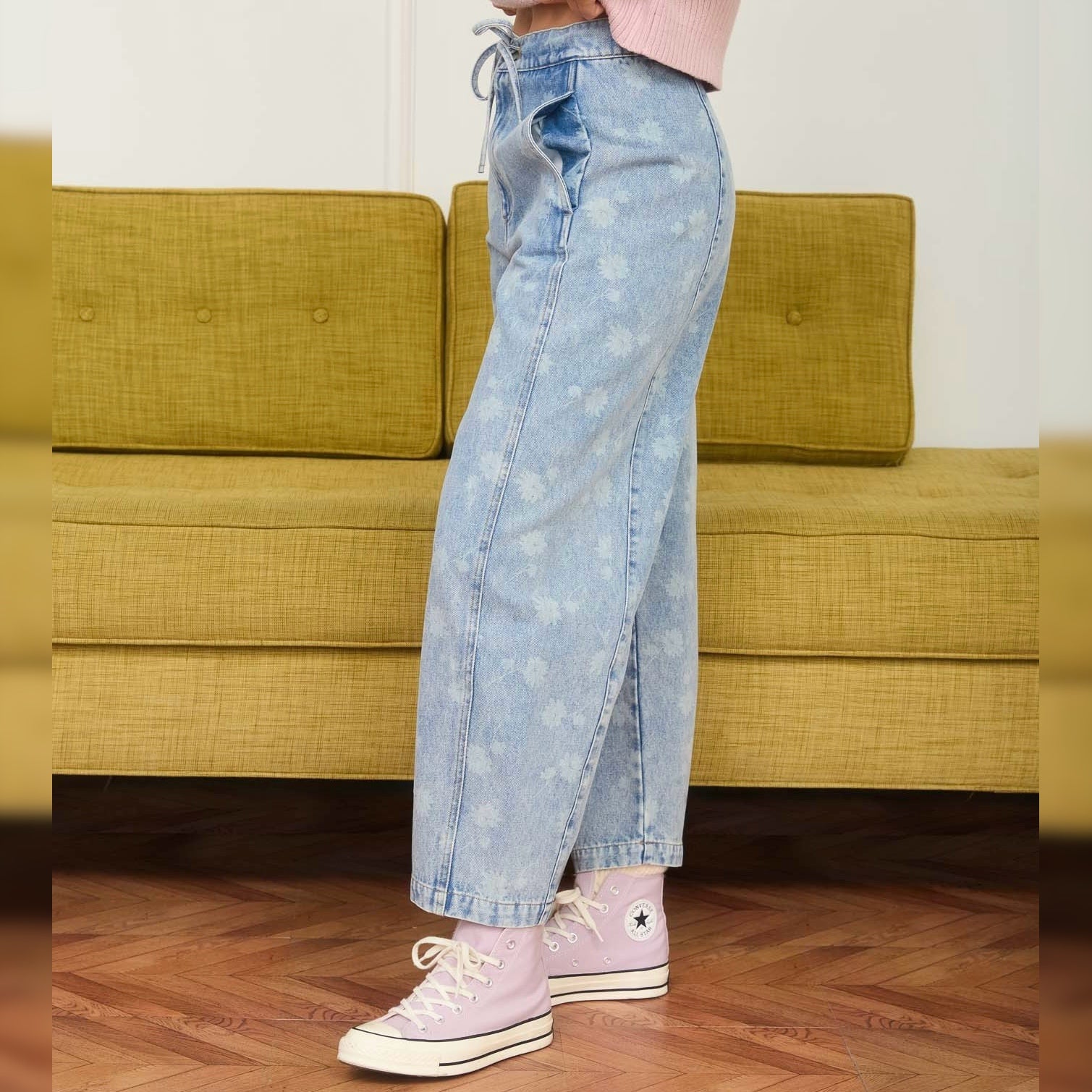 BLUE FLOWER PRINTED TIE DENIM JEANS