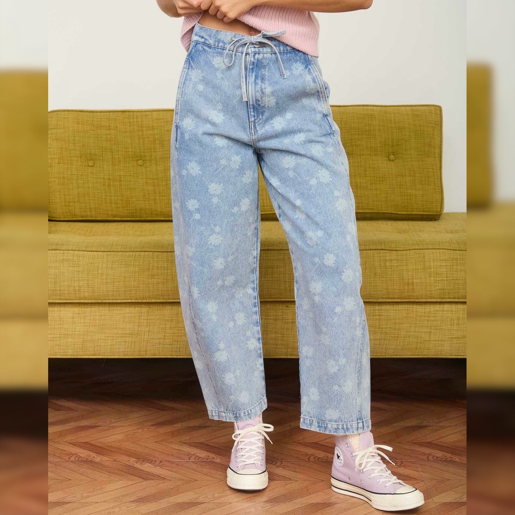 HIGH WAIST DRAWSTRING DETAIL POCKETS DANDELION WASHED DENIM PATTERN TONES MAY VARY NOT LINED JEANS 60%COTTON 25%POLYESTER 15%RAYON