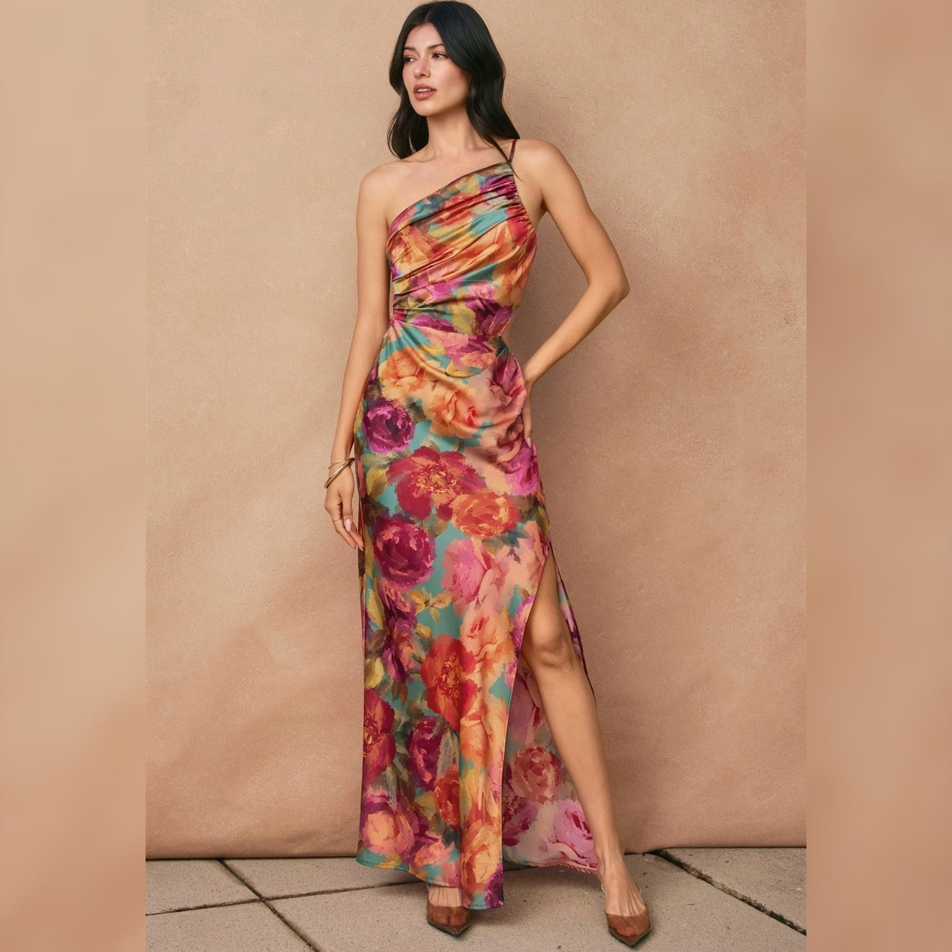 END OF THE DAY FLORAL ONE SHOULDER MAXI DRESS