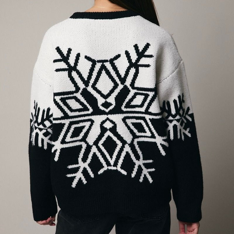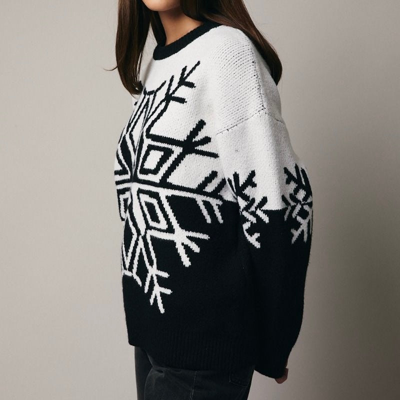 ROUND NECK LONG SLEEVE SNOW FLAKE TUNIC SWEATER