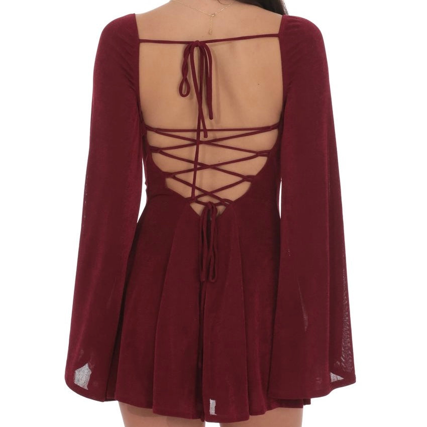 LUCY IN THE SKY BURGUNDY FLARE SLEEVE DRESS