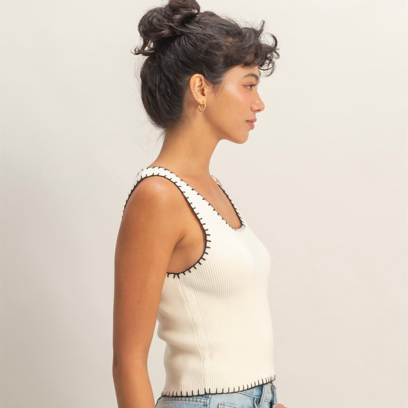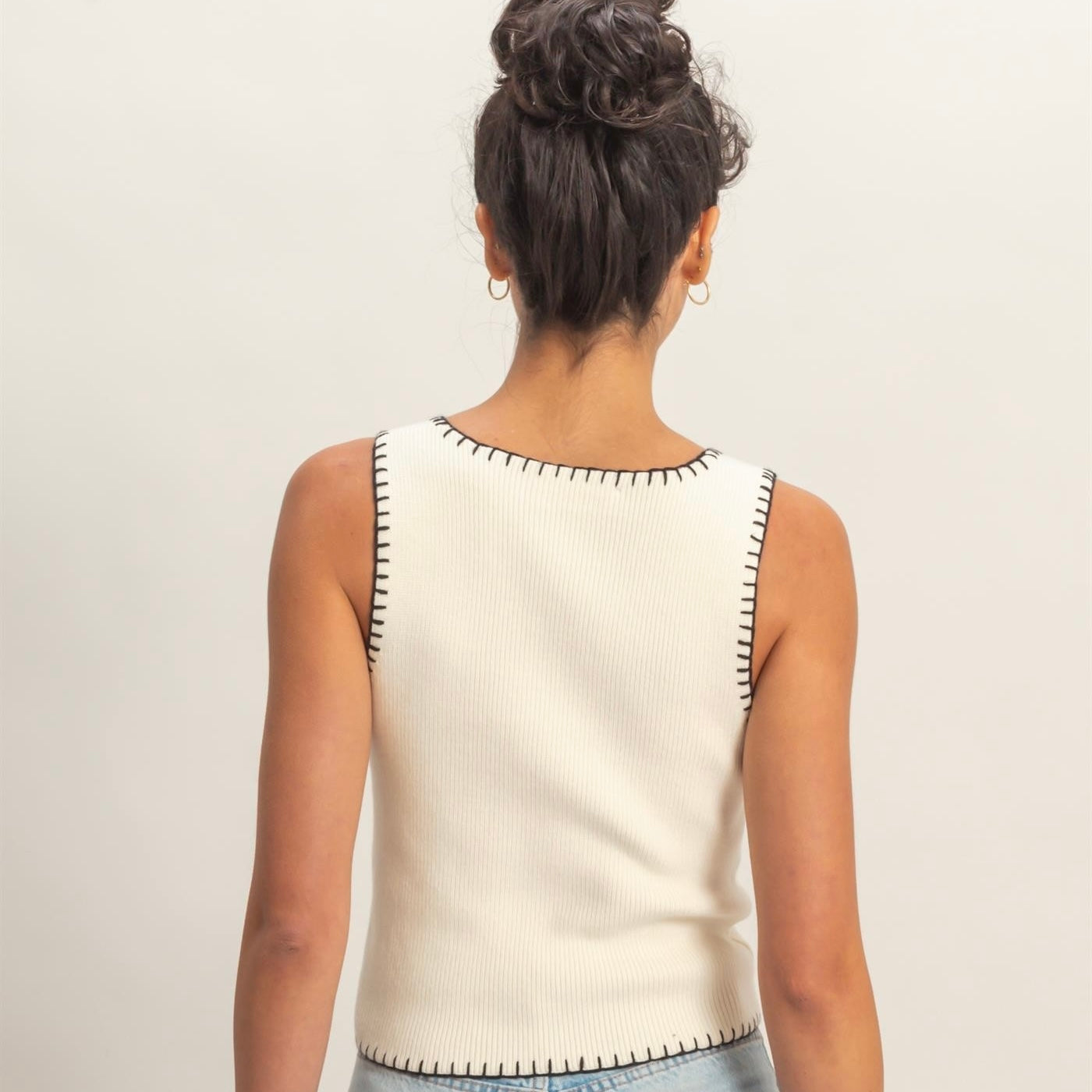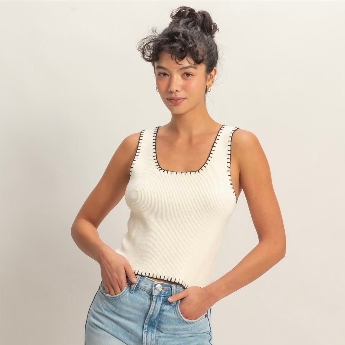 OUT OF THE ORDINARY WHITE CONTRAST STITCH TANK TOP
