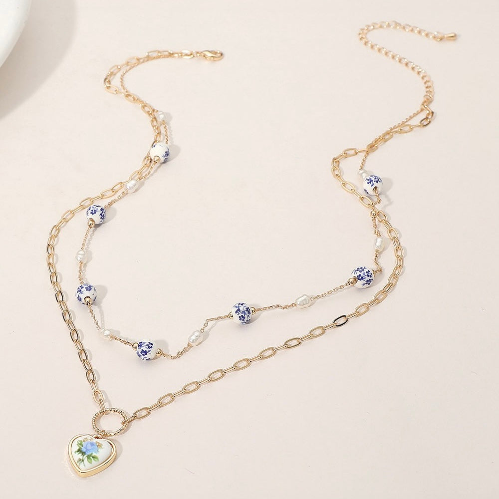 MILLIE BLUE LAYERED CERAMIC HEART NECKLACE