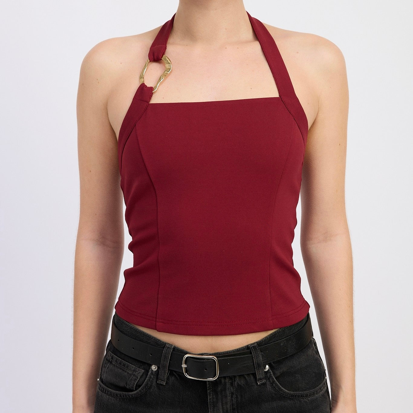 YOU GOT IT BURGUNDY GOLD DECAL HALTER TOP